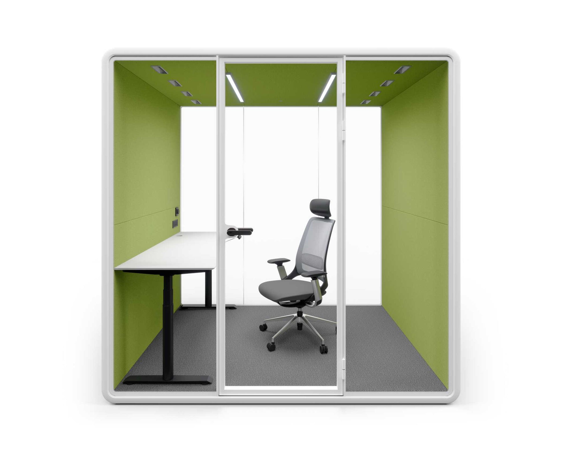Aura Solo, a versatile and compact workspace solution that is perfect for solo working, phone phone calls, and meditation.