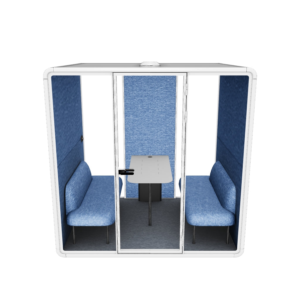Aura Meet is a versatile and roomy 44 sq ft meeting space room that effortlessly accom- modates up to 4 people.
